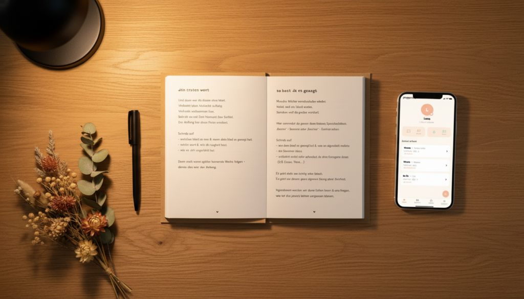 Das Plapperbuch bewahrt die ersten Worte deines Kindes – von den Lauten vor dem Sprechen bis zu den Sätzen, in denen schon ein eigener kleiner Mensch steckt.